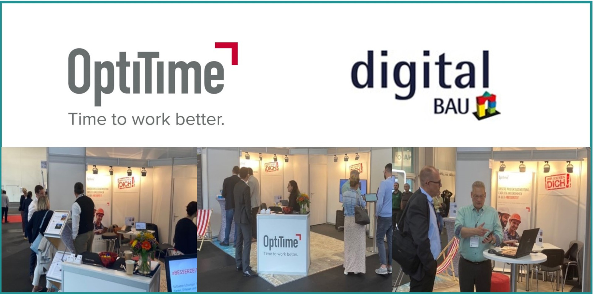 Wir waren dabei - nach 2 Jahren Messepause waren wir vom 31. Mai bis zum 2. Juni 2022 auf der digitalBAU in Köln. 330 Aussteller, rund 10.000 Besucher, diese Zahlen sprechen für sich. Die Baubranche hat hier einen guten Einblick von digitalen Lösungen erhalten - unter anderem bei uns am Messestand. Bei einem Kaffee oder einer Ahoi-Brause standen wir Rede und Antwort bei allen Fragen rund um das Baustellenmanagement. Unsere Kunden und Interessenten informierten sich aus erster Hand über die neue Zeiterfassungs-App, der mobilen Logistiklösung und der Foto-Erfassung auf Baustellen. "Die OptiTime Süd ist nun erstmalig mit an Bord - so fördern und unterstützen wir die Digitalisierung in der Bauindustrie - von Flensburg bis Garmisch-Partenkirchen. Der gemeinsame Austausch mit unseren Partnern, Kunden und Interessenten steht dabei im Mittelpunkt", so Marian Asche, Geschäftsführer OptiTime Süd GmbH.