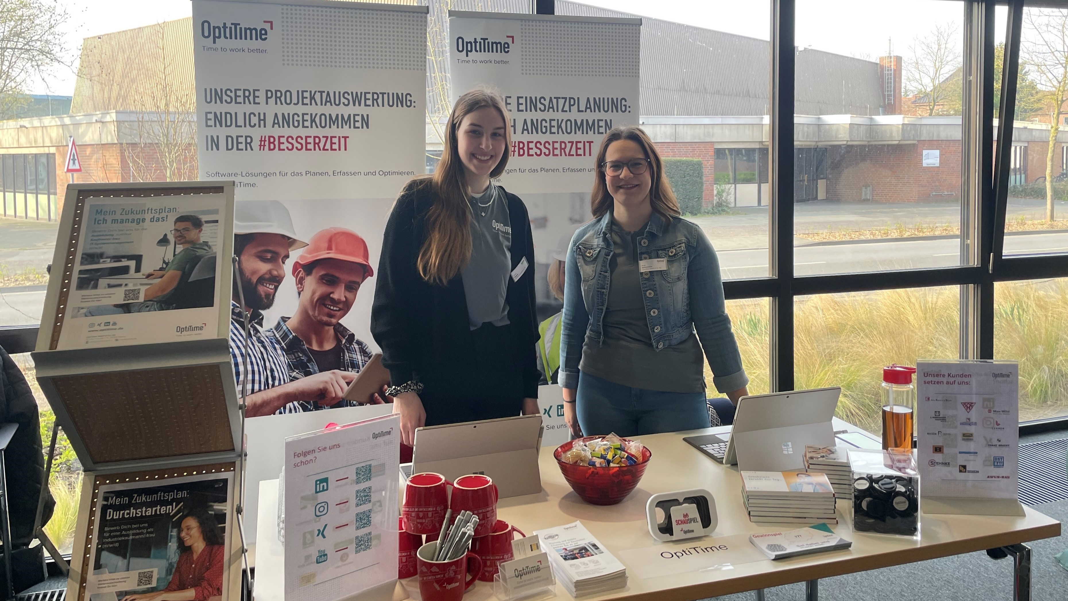 Am 20. März 2024 standen Emma und Birgit mit unserem Stand bei den kaufmännischen Schulen in Rheine um Rede und Antwort für die interessierten Schülerinnen und Schülern zu stehen. Morgens starteten die Rundgänge der HHU- und HHO-Klassen. Unter anderem gab es ein Gewinnspiel, bei dem jeder mit raten konnte - die ersten Gewinner stehen auch schon fest. Mit den anschließenden kurzen Bewerbungsgesprächen waren Emma und Birgit mit dem Tag sehr zufrieden und wir natürlich auch.