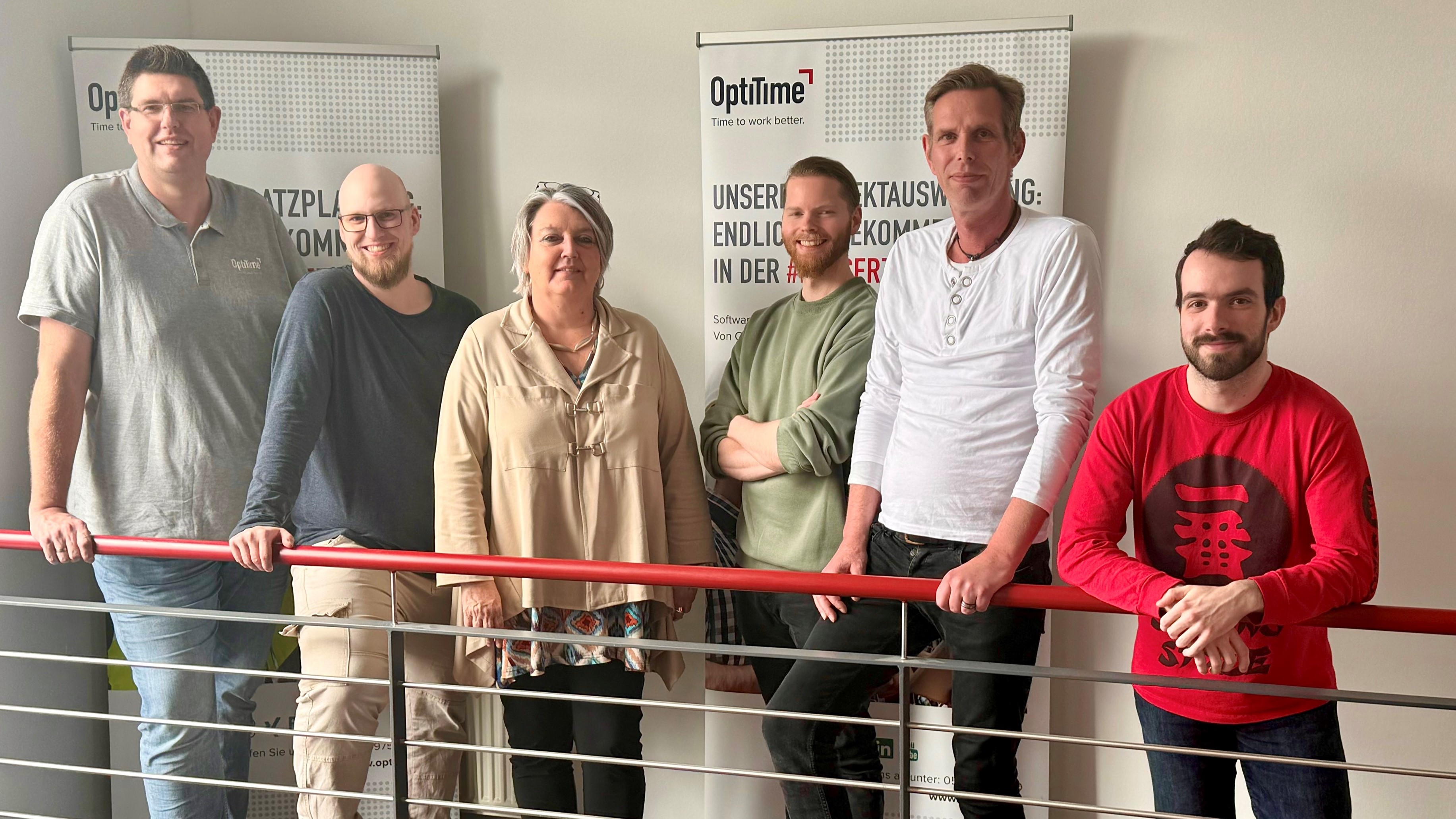 Mathias ist als Projektleiter der erste Ansprechpartner für unsere Kunden. Hierzu führt er die Workshops und bespricht die individuellen Details zum Projekt mit dem Kunden. Organisatorisch und planerisch wird er dabei durch Martina unterstützt, die die Termine von Mathias fest im Griff hat. Julian ist hierbei fachlich die rechte Hand von Mathias und kümmert sich zusätzlich um die Anforderungen und Umsetzungen bei der Formularerfassung. Er agiert ebenfalls als Mentor für neue Kollegen und motiviert sein Team zu Höchstleistungen. Maik und Dirk decken den Support ab – sie sind bei jeder Frage unserer Kunden die ersten Ansprechpartner und unterstützen in der Bedienung von OptiControl. Bei Sonderwünschen sind wir auch für Sie da – Alex programmiert gerne ein neues Feature oder erstellt Reports, die sich unsere Kunden wünschen.