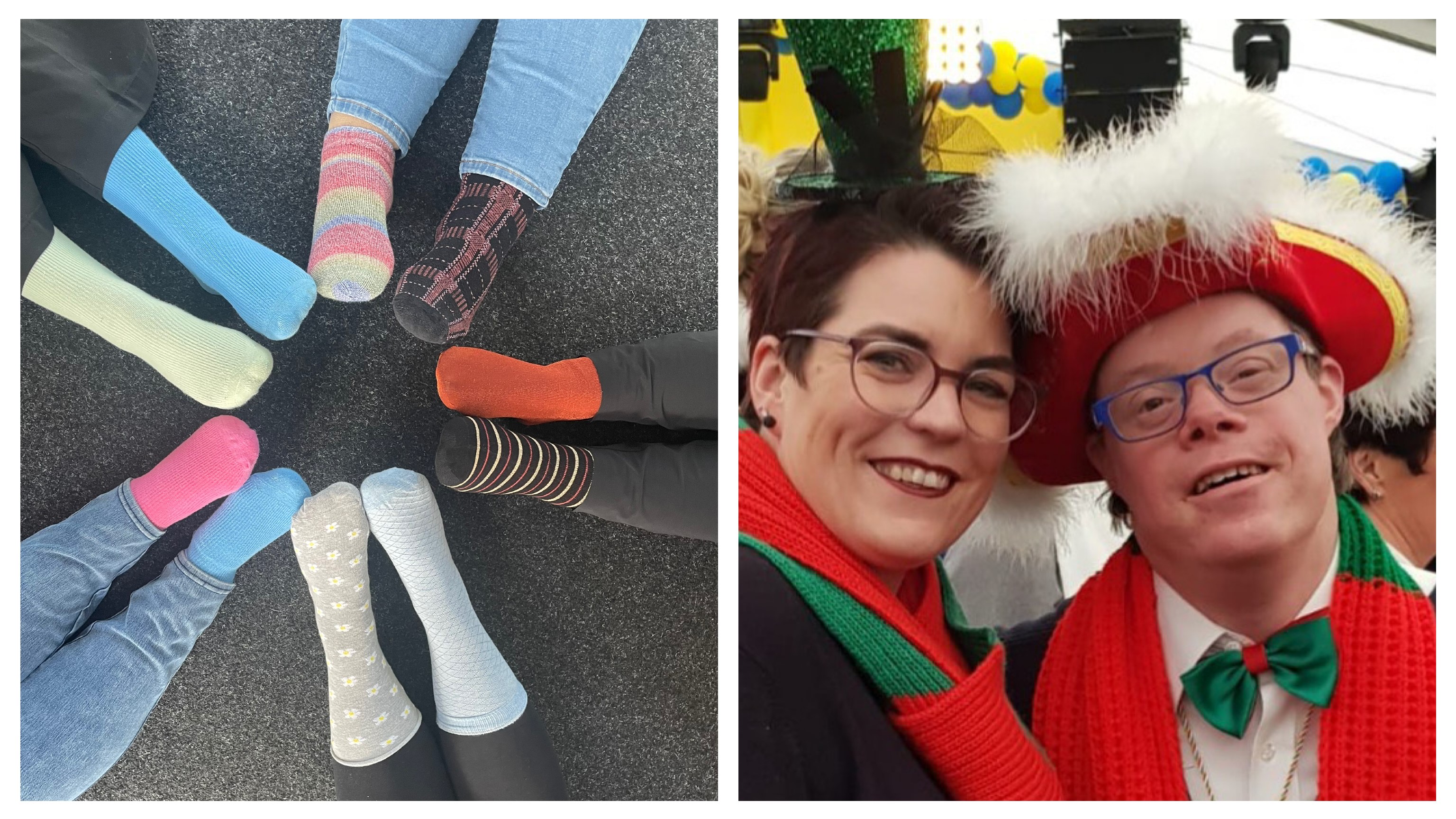 Am Welt-Down-Syndrom-Tag tragen viele Menschen 2 verschiedene Socken. Sie wollen damit zeigen, dass alle Menschen unterschiedlich sind. Dann sollten es unsere Socken auch sein.